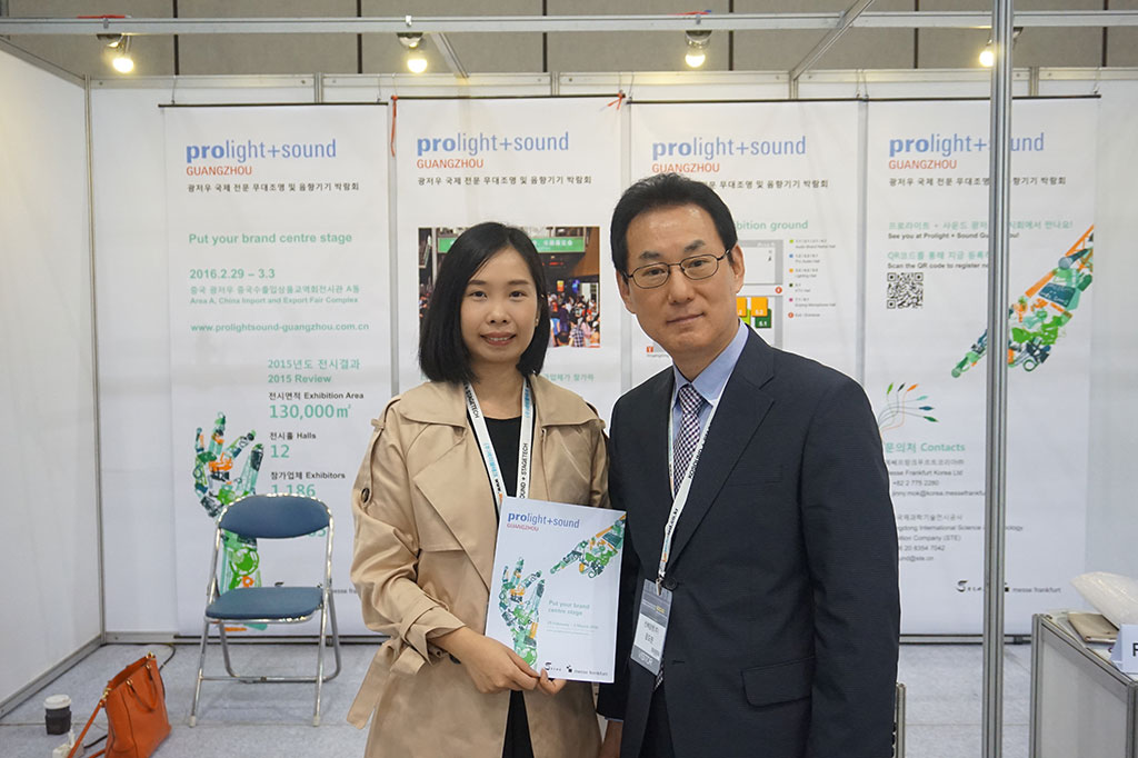 为推广2016年广州音响展,进一步开拓韩国音响灯光市场,公司于11月3日委派音响展两名成员张凤子和崔华同志前往韩国参加2015年第十三届Korea Audio-Stage Equipment·Lighting·Visual Fair(以下简称“KOSOUND展会”)。