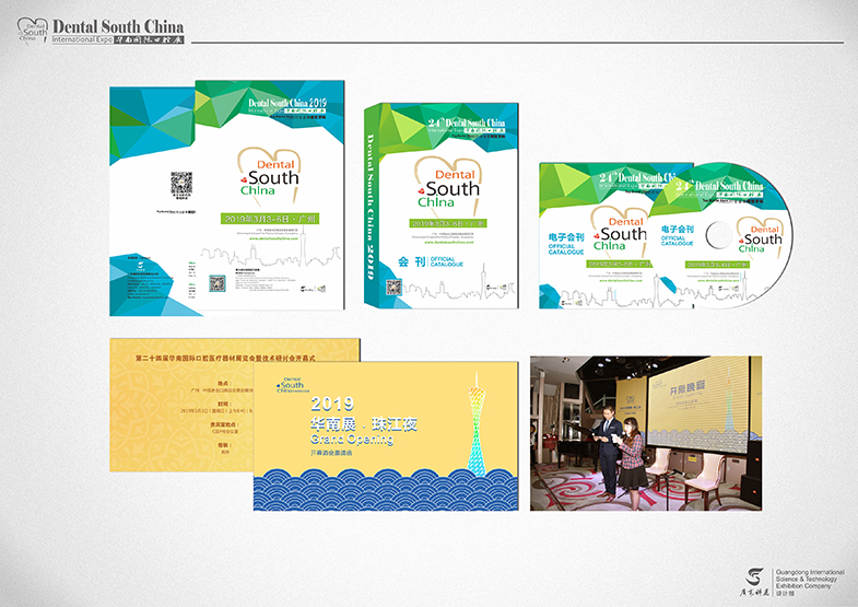 我司广告部独立制作的2019华南国际口腔展览会宣传印刷品,包括有参观邀请函、招展书、参观指南、胸卡等。